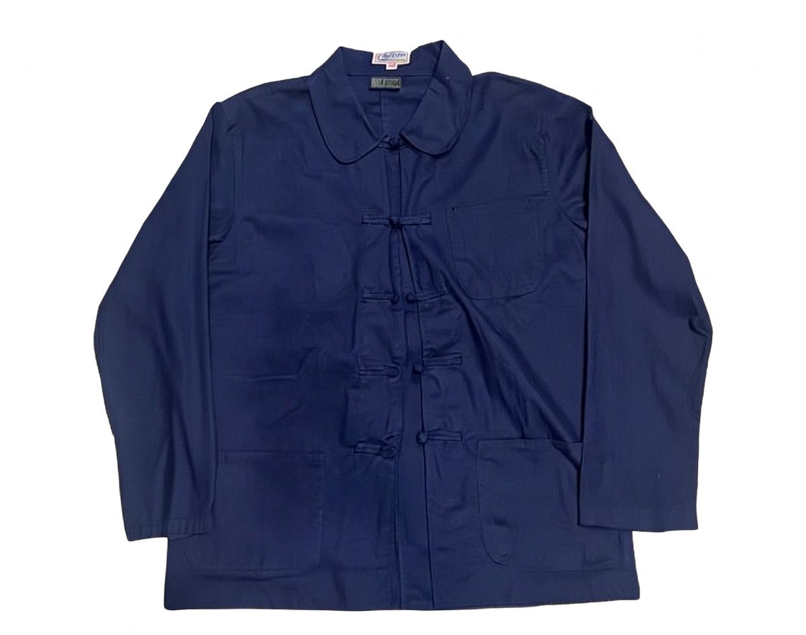 Ensemble bleu marine deux pièces en coton , avec col chemise traditionnel, boutons noués et coupe ample confortable